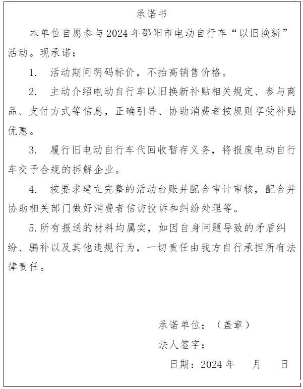 9.填写《电动自行车销售企业参与“以旧换新”活动报名表》(附件1)。
