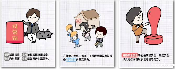 重点打击把持或侵害基层政权组织的“问题村官”,破坏影响基层选举,以暴力威胁或其他不法手段欺压百姓、危害一方的农村黑恶痞霸势力。