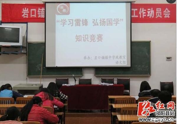 为提高学生的人文素养和审美情趣,3月29日,岩口铺镇中学政教室和语文组联合举行国学知识竞赛。 语文组事先给出国学基础知识题库,打印发至各班,学生先行熟悉题库知识内容,每班再推选5名学生集中参赛。经过批阅,各年级段、按比例分别评选一、二、三等奖。