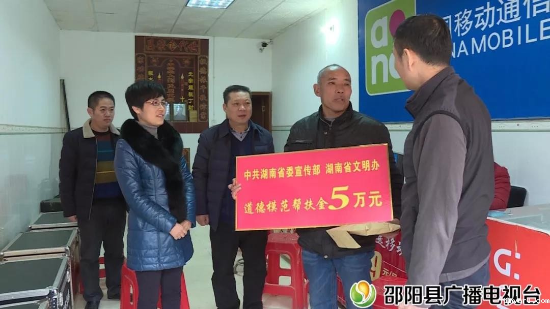 当天下午,慰问组一行前往谷洲镇广播电影站刘亮的家里进行慰问,当场为生活贫困的省道德模范提名奖获得者刘亮发放五万元帮扶金。慰问中,省道德模范慰问组一行参观了刘亮租来的公益电影固定放映点,并与刘亮进行了亲切交谈.