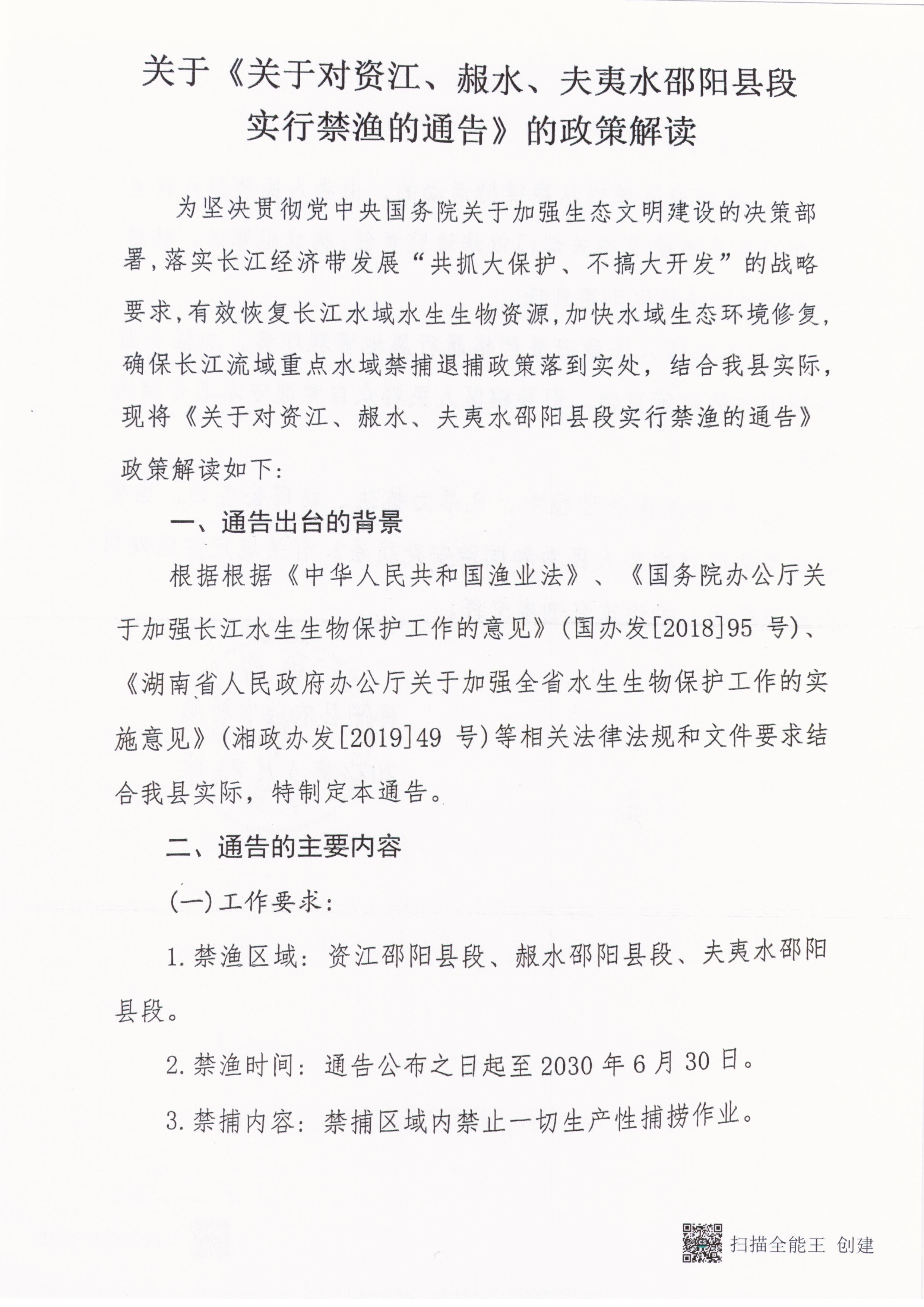 【文字】关于对资江、赧水、夫夷水kaiyun体育娱乐段实行禁渔的通告的政策解读