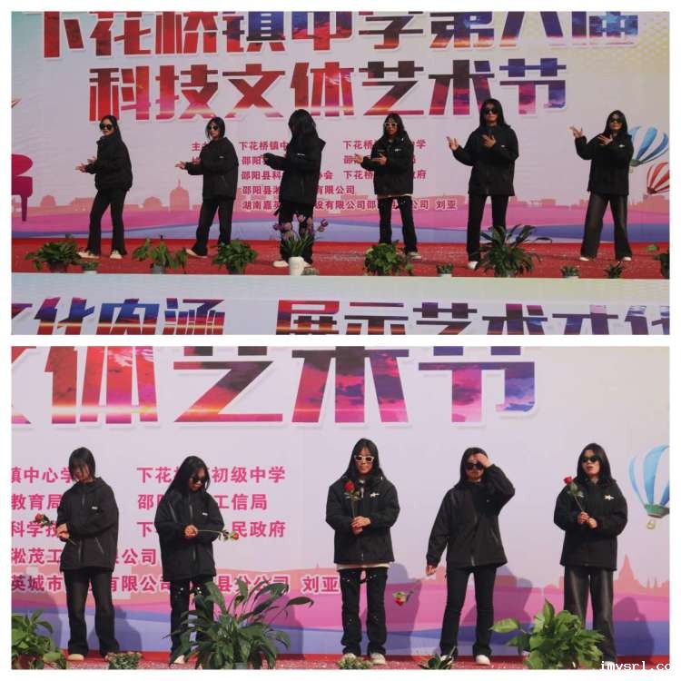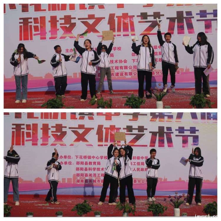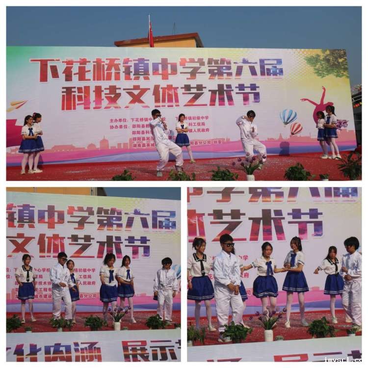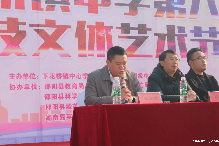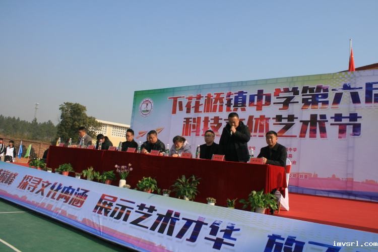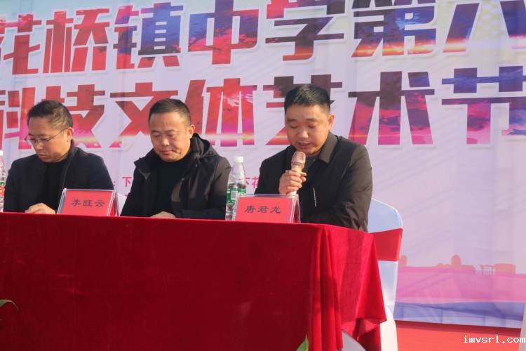 下花桥镇中学党支部书记唐君龙同志致欢迎词,唐书记表示:在这晴空万里的日子里,欢乐的校园迎来了我校第六届校园文体艺术节的隆重开幕。首先,我代表学校预祝第六届校园文体艺术节取得圆满成功,向组织、筹划、参与这次艺术节的领导、老师以及积极参与这次艺术节的全体同学们表示衷心的感谢!举办科技文化体育艺术节是贯彻落实习近平新时代中国特色社会主义思想,践行习近平总书记关于科技创新、文化传承、体育强国、艺术发展一系列新思想、新论断、新要求的重要举措。在今后的两天时间里,我们将进行科技展览、书画展出、师生手工作品展示、文艺汇演,以及特色才艺展示等活动。希望同学们在学校搭建的这个大舞台上涌跃展现科技之趣、文化之光、艺术之花、健康之美,尽情张扬个性,充分展示特长,在文化的海洋、体育的世界、艺术的天空中点燃激情、迎接挑战、放飞梦想!在强国建设中凝聚青春力量,在复兴伟业中践行责任与担当!