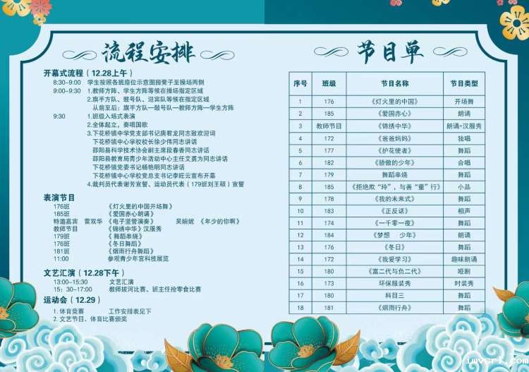 活动在开场舞《灯火里的中国》中拉开序幕,接着各班级队伍轮番上台,表演一系列精彩节目,让我们一起来享受视听盛宴!