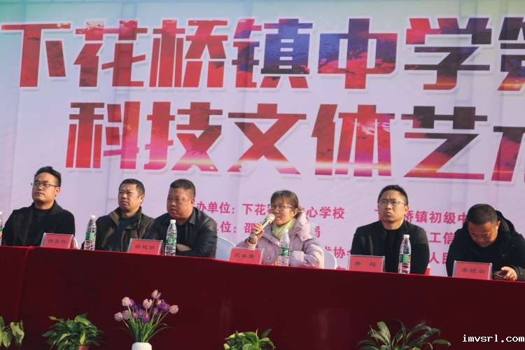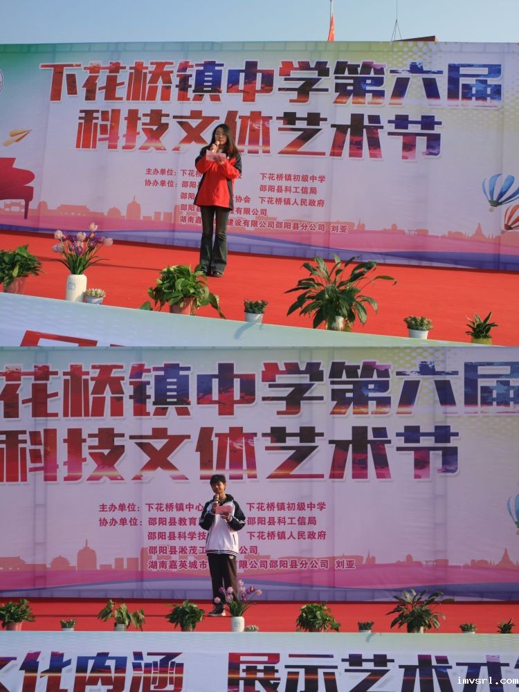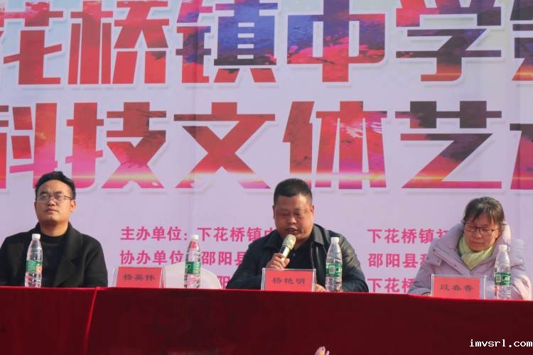 下花桥镇党委书记杨艳明同志发表重要讲话,他表示:一直以来,下花桥镇各级领导密切关心关注着下花桥镇中学的建设与发展,今天我们很欣喜的看到,学校建设日新月异,教育教学秩序井然,师生精神面貌优良,这一切都离不开教育局各级领导的大力支持,更离不开全体教职工团结奋斗与辛勤付出,我对此表示很欣慰,也很期待这次的科技文体艺术节。