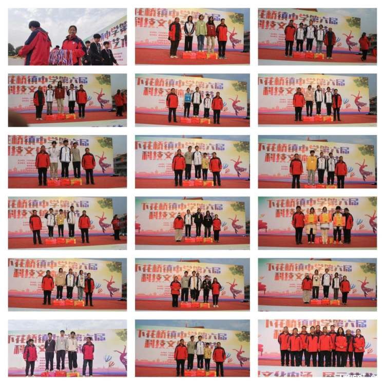由教师代表为本次运动会和文艺汇演中获得优秀成绩的个人和班级颁发奖牌。最后,由下花桥镇中学彭校长的总结发言为第六届科技文体艺术节拉下帷幕。