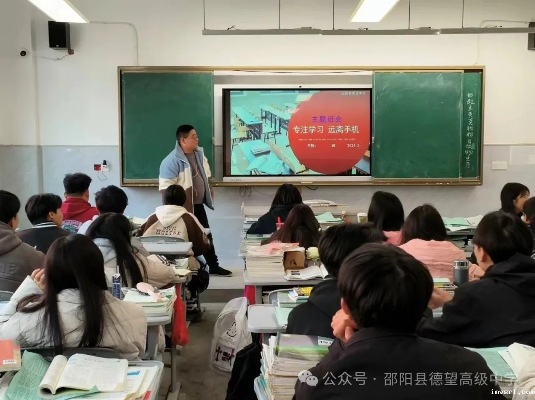 教师大会 二是禁用智能手机,引导学生把心思集中到学习上来。在校门口和教学楼悬挂大幅宣传标语,电子屏滚动播出温馨提示标语,提醒学生主动弃用智能手机。在各班播放宣传教育片,让学生全面知晓使用智能手机的危害性,同时要求班主任组织学生利用主题班会或辩论赛等形式,让学生深刻认识到使用智能手机对身心产生的种种危害,从内心深处认同禁用智能手机的好处,主动远离手机,安心学习。学校德育处、班主任和课任老师在日常工作中也注意检查和督促学生远离手机。
