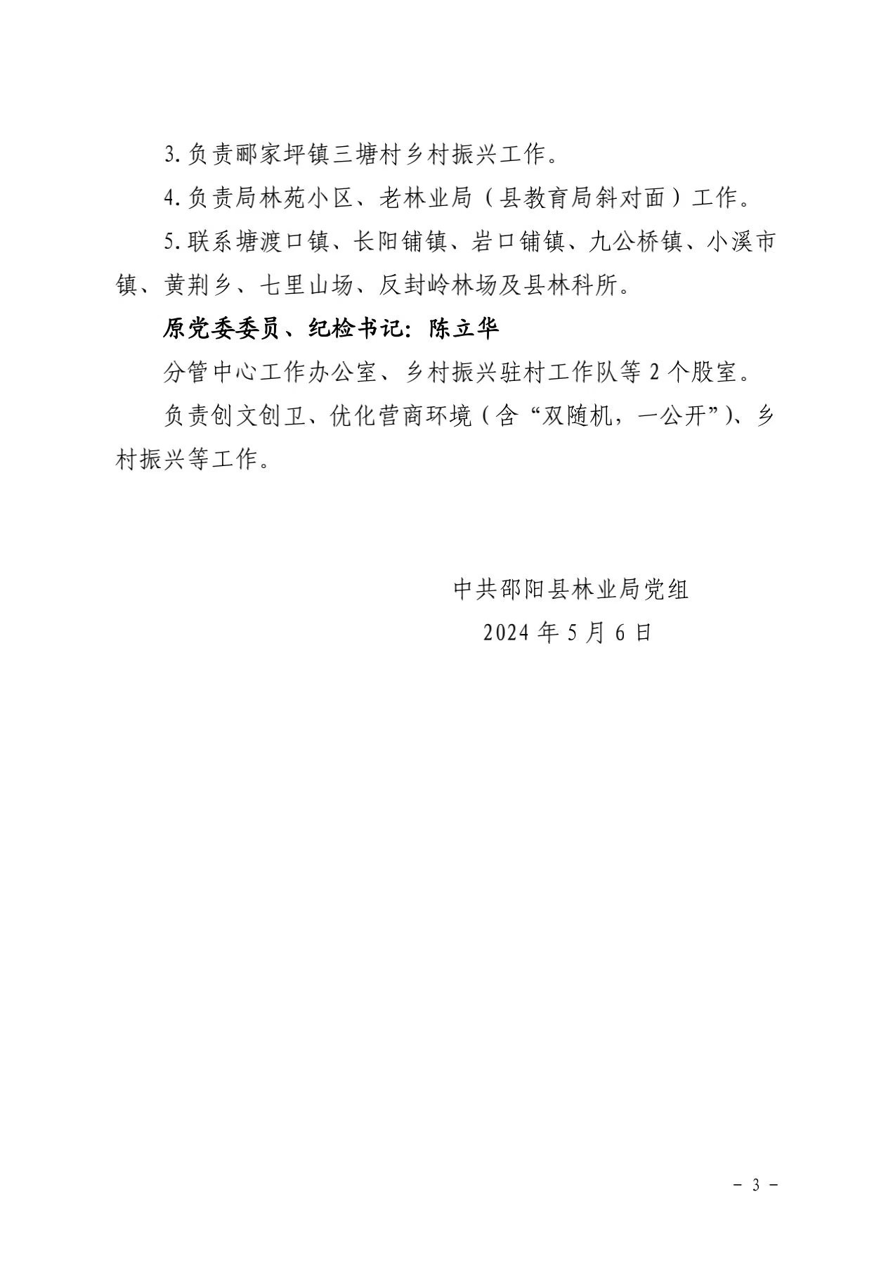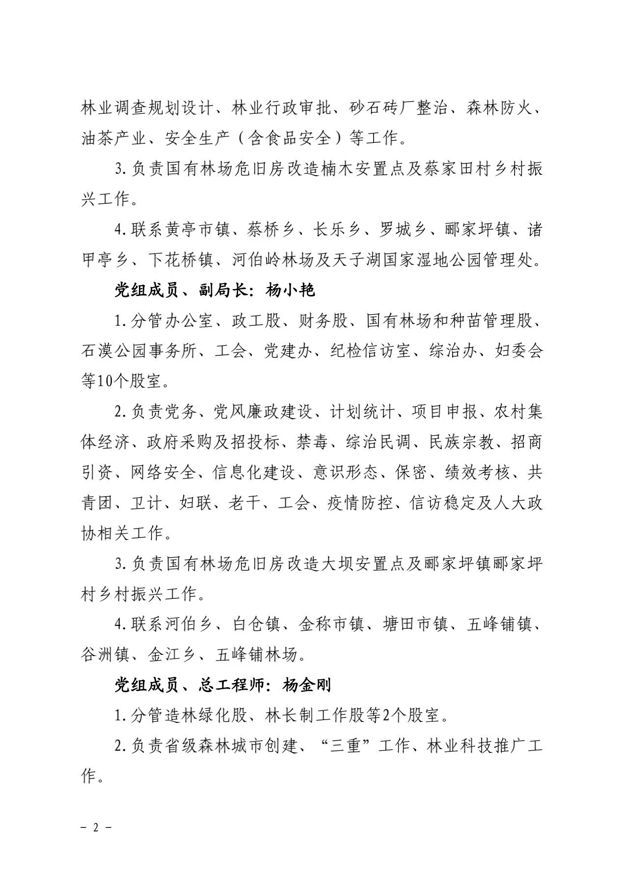 中共kaiyun体育娱乐林业局党组关于调整2024年班子成员分工的通知
