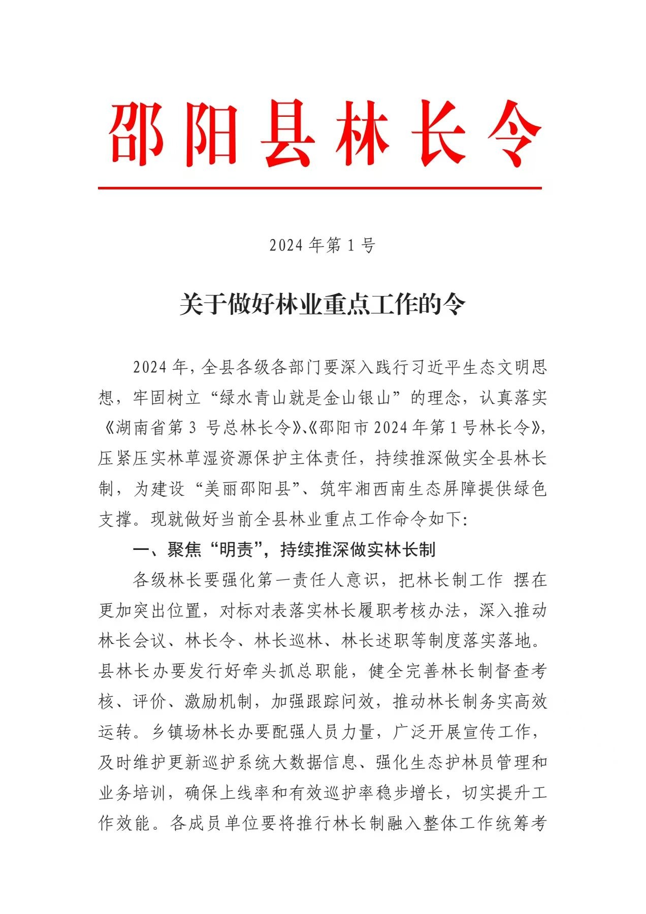 关于做好林业重点工作的令(2024年第1号)