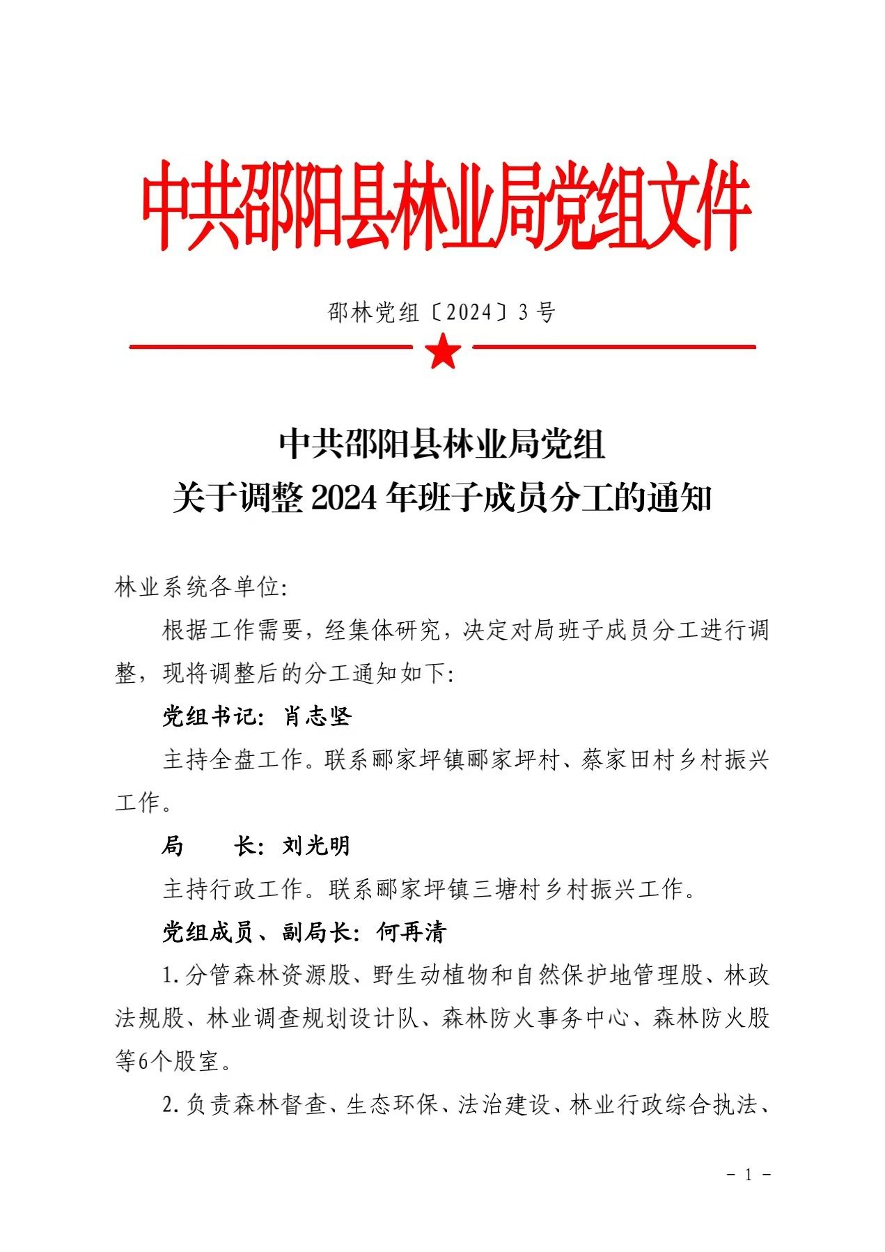 中共kaiyun体育娱乐林业局党组关于调整2024年班子成员分工的通知